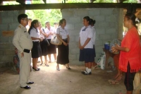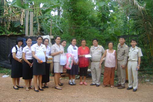 ท่านผอ.บรรเทิง คำทอง ผู้อำนวยการโรงเรียน คณะครู และนักศึกษาฝึกประสบการณ์วิชาชีพครู โรงเรียนด่านแม่คำมันพิทยาคม นำของใช้ ข้าวสาร อาหารแห้ง เยี่ยมบ้านนักเรียนเด็กหญิงศกลวรรณ อากรนิธิ นักเรียนชั้นมัธยมศึกษาปีที่ 3/2 ที่เกิดเพลิงไหม้จากไฟฟ้าลัดวงจรบริเวณห้องนอน เมื่อวันที่ 26 พฤษภาคม 2557 ณ บ้านเลขที่ 54/1 หมู่ 7 ตำบลด่านแม่คำมัน จังหวัดอุตรดิตถ์ |