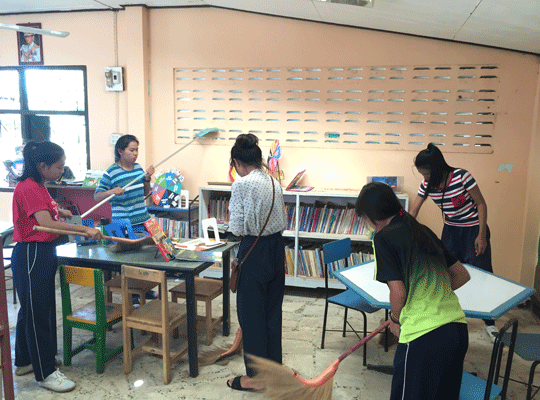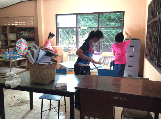 กิจกรรมในชมรม TO BE NUMBER ONE จิตอาสา พัฒนาชุมชน ณ ห้องสมุดโรงเรียนห้วยขมิ้น