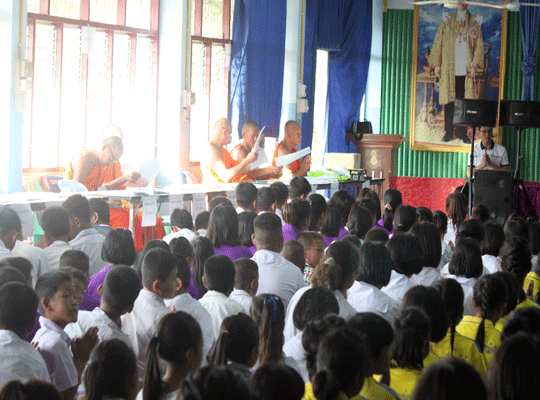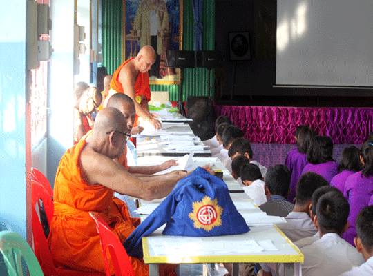วันที่ 1 ธันวาคม 2558 การสอบธรรมสนามหลวง ครั้งที่ 2 แผนกธรรม ร่วมกับโรงเรียนด่านแม่คำมันพิทยาคม จัดสอบธรรมสนามหลวง ประจำปี 2558 ธรรมศึกษาชั้นตรี-โท-เอก โดยทดสอบวิชาเรียงความแก้กระทู้ธรรม และทดสอบวิชาธรรมะ วิชาพุทธะ และวิชาวินัย ณ สนามสอบโรงเรียนด่านแม่คำมันพิทยาคม โดยเริ่มสอบช่วงเช้าเวลา 08.30-12.00 น. ช่วงบ่ายเริ่มเวลา 13.00-16.00 น. ธรรมศึกษา คือ การเรียน การสอน การสอบธรรมสนามหลวงสำหรับคฤหัสถ์หรือบุคคลทั่วไป ที่ไม่ใช่บรรพชิต (พระภิกษุสามเณร) ซึ่งธรรมศึกษานั้นเป็นหลักสูตรนักธรรมสำหรับฆราวาส เรียกว่า “ธรรมศึกษา” ในปัจจุบันมีการเรียนทั้งหมด ๓ ชั้น คือ ธรรมศึกษาชั้นตรี,ธรรมศึกษาชั้นโท,และธรรมศึกษาชั้นเอก |