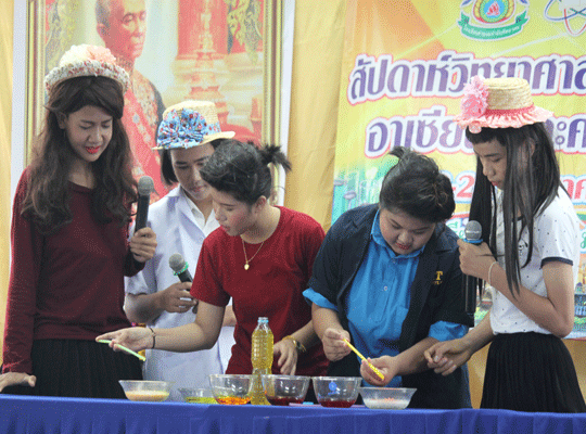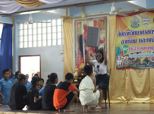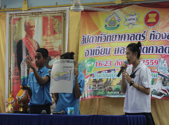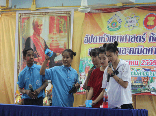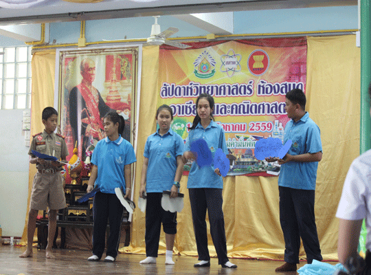 นำโดย นายประจวบ พิมละมาศ ผู้อำนวยการโรงเรียนเป็นประธานเปิดงาน พร้อมด้วยคณะครูและนักเรียน ร่วมพิธีเปิด โดยกลุ่มสาระการเรียนรู้วิทยาศาสตร์ ได้จัดกิจกรรมสัปดาห์วิทยาศาสตร์แห่งชาติในระหว่างวันที่ 16-23 สิงหาคม พ.ศ. 2559 และในการจัดงานในครั้งนี้ได้มีกลุ่มสาระสังคมศึกษา ศาสนาและวัฒนธรรม กลุ่มสาระคณิตศาสตร์ และงานห้องสมุดได้เข้าร่วมจัดกิจกรรมในครั้งนี้ด้วย ซึงมีวัตถุประสงค์ในากรจัดงานดังนี้ เพื่อเป็นการเทิดพระเกียรติแด่พระบาทสมเด็จพระจอมเกล้าเจ้าอยู่หัว บิดาแห่งวิทยาศาสตร์ไทย และ เปิดโอกาสให้นักเรียนได้แสดงความสามารถด้านวิทยาศาสตร์ เผยแพร่ความรู้ทางด้านวิทยาศาสตร์และเทคโนโลยี และสร้างเจตคติที่ดีต่อวิชาวิทยาศาสตร์ให้กับนักเรียน เช่น การแสดงชุดแฟนซีรียูส(อาเซียน) Science Show การแสดงละครวิทยาศาสตร์ จรวดขวดน้ำ เครื่องร่อน โยนไข่ การจัดสวนถาด และอื่นๆ อีกมากมาย ณ หอประชุมเอนกประสงค์ |
