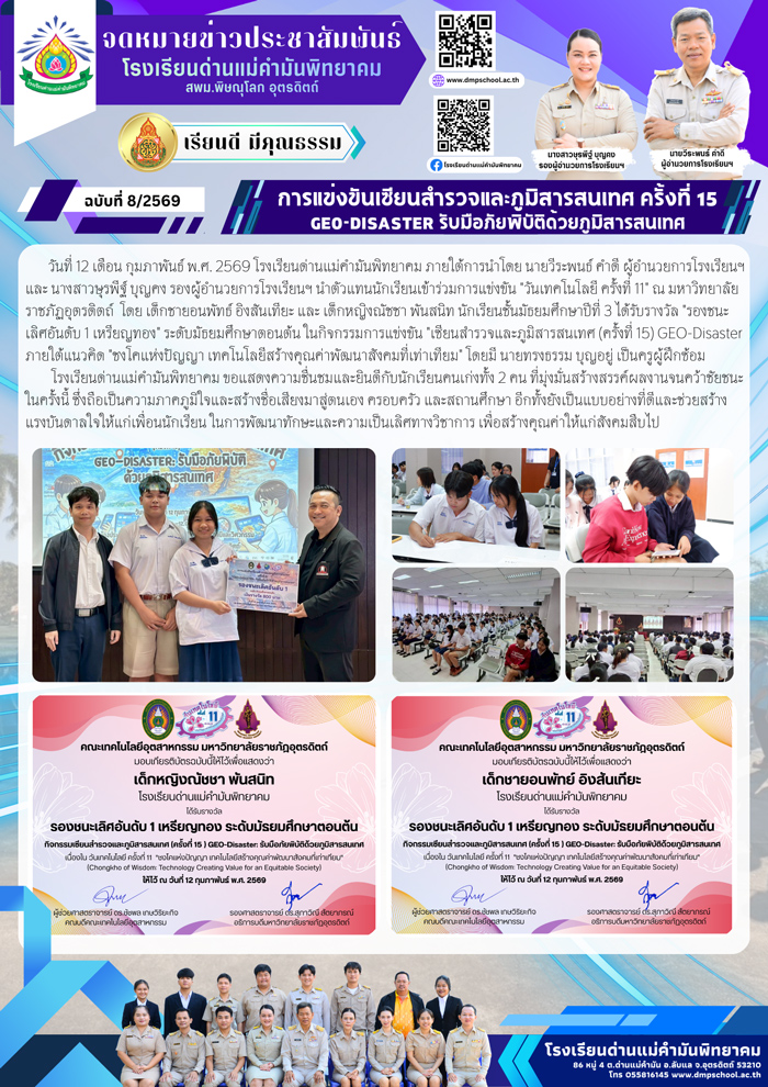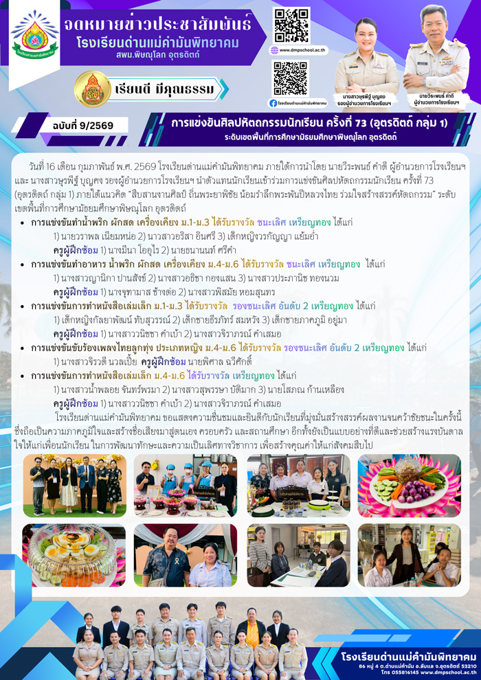 ประกาศโรงเรียนด่านแม่คำมันพิทยาคม เรื่อง รายชื่อนักเรียนที่ผ่านการคัดเลือกเข้าศึกษาต่อระดับชั้นมัธยมศึกษาปีที่ ๑ และชั้นมัธยมศึกษาปีที่ ๔ ปีการศึกษา ๒๕๖๘ 28 มี.ค. 68