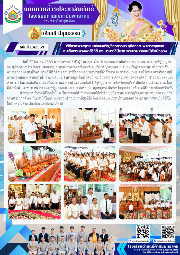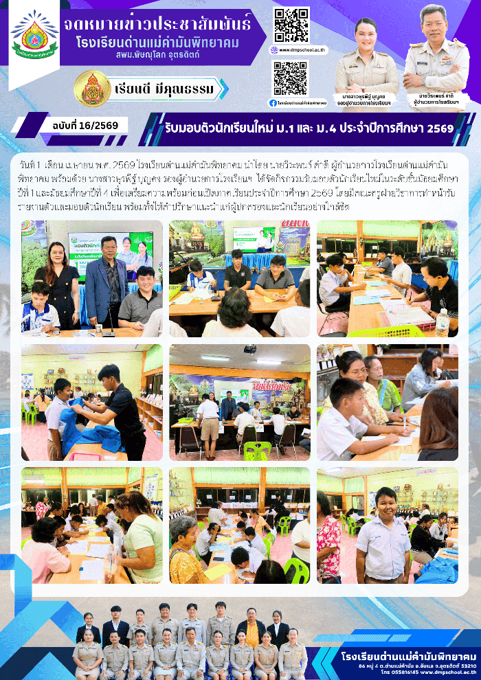 ประกาศโรงเรียนด่านแม่คำมันพิทยาคม เรื่อง แจ้งรายชื่อนักเรียนที่ผ่านการคัดเลือกเข้าศึกษาต่อระดับชั้นมัธยมศึกษาปีที่ ๑ และชั้นมัธยมศึกษาปีที่ ๔ ปีการศึกษา ๒๕๖๙ 27 มี.ค. 69